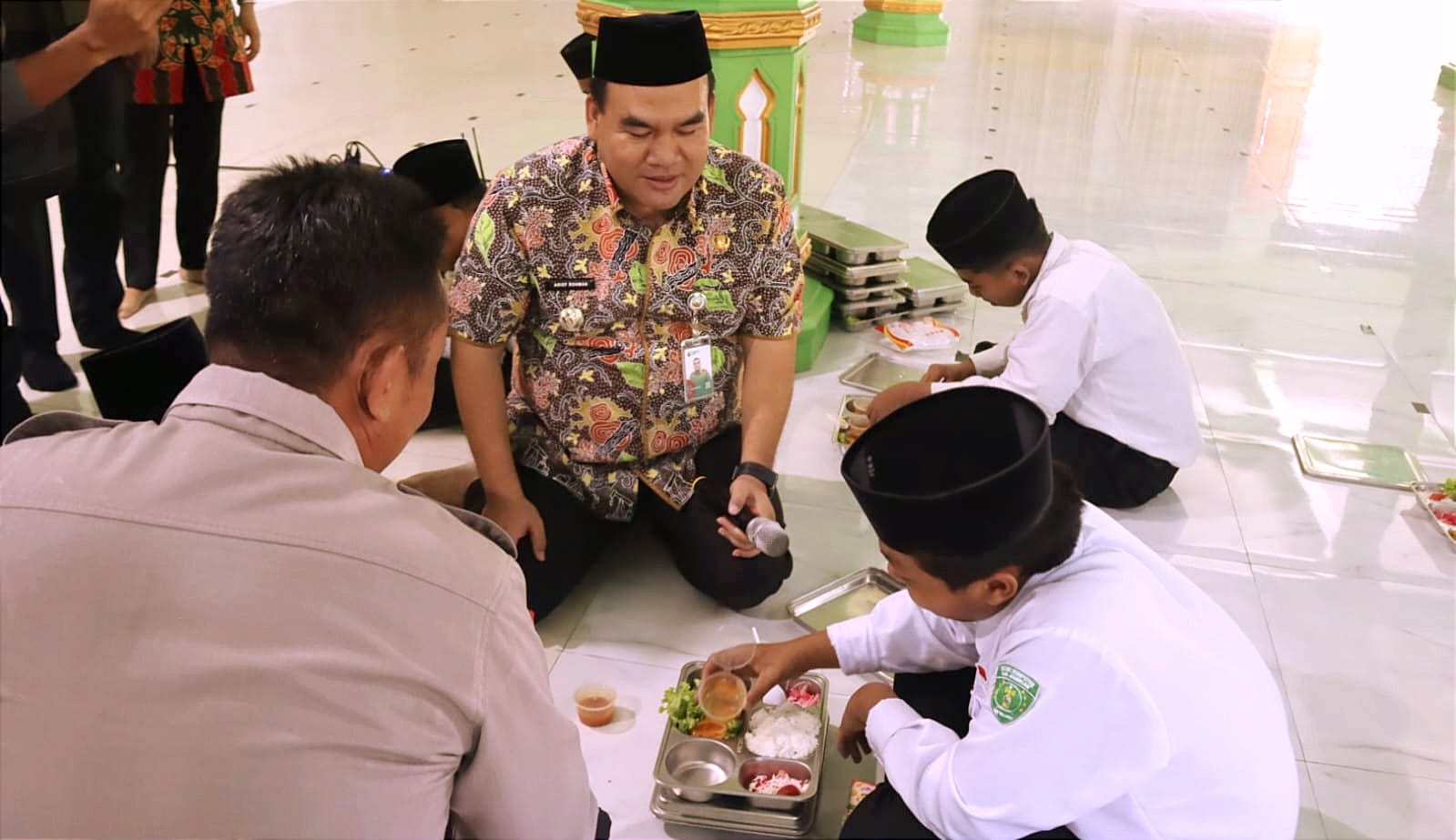 Salah satu santri, Sulthon, tak ragu menyampaikan rasa senangnya di depan Bupati dan para guru. “Alhamdulillah enak Pak menunya. Kalau bisa ya porsinya lebih banyak, ditambah hehe.. Terima kasih Pak Presiden dan Pak Bupati, saya dan teman-teman sudah diberi makanan gratis setiap hari,” ujarnya yang disambut tawa.
