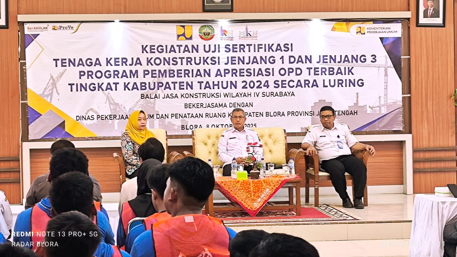 RADARBLORA.COM,– Program peningkatan kualitas Sumber Daya Manusia (SDM) konstruksi di Kabupaten Blora mendapat sambutan luar biasa dari masyarakat. Hal ini ditunjukkan dengan suksesnya penyelenggaraan Uji Kompetensi Tukang Batu, Petugas Keselamatan serta Kesehatan Kerja (K3) Jenjang 1 dan 3 yang diikuti peserta jauh melampaui ekspektasi.
