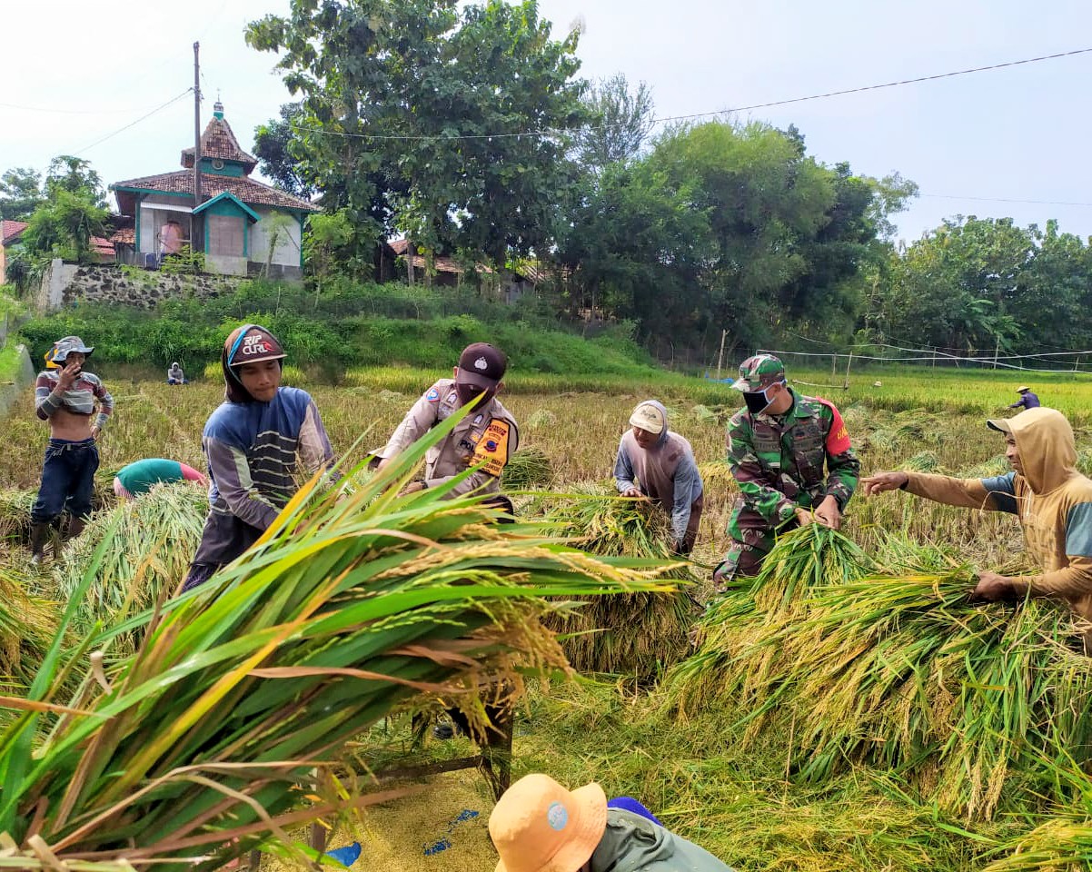 Selain memberikan himbauan agar tetap melaksanakan social distancing dan menggunakan masker setiap kegiatan, termasuk saat memanen padi, mereka secara nyata turut membantu memanen padi bersama masyarakat.