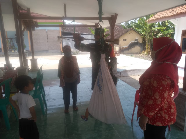 HALOBLORA.COM – Babinsa Koramil 05/Cepu, Sertu Karno melaksanakan pendampingan kegiatan posyandu di Desa Mernung Kecamatan Cepu Kabupaten Blora, Kamis (06/08/2020).