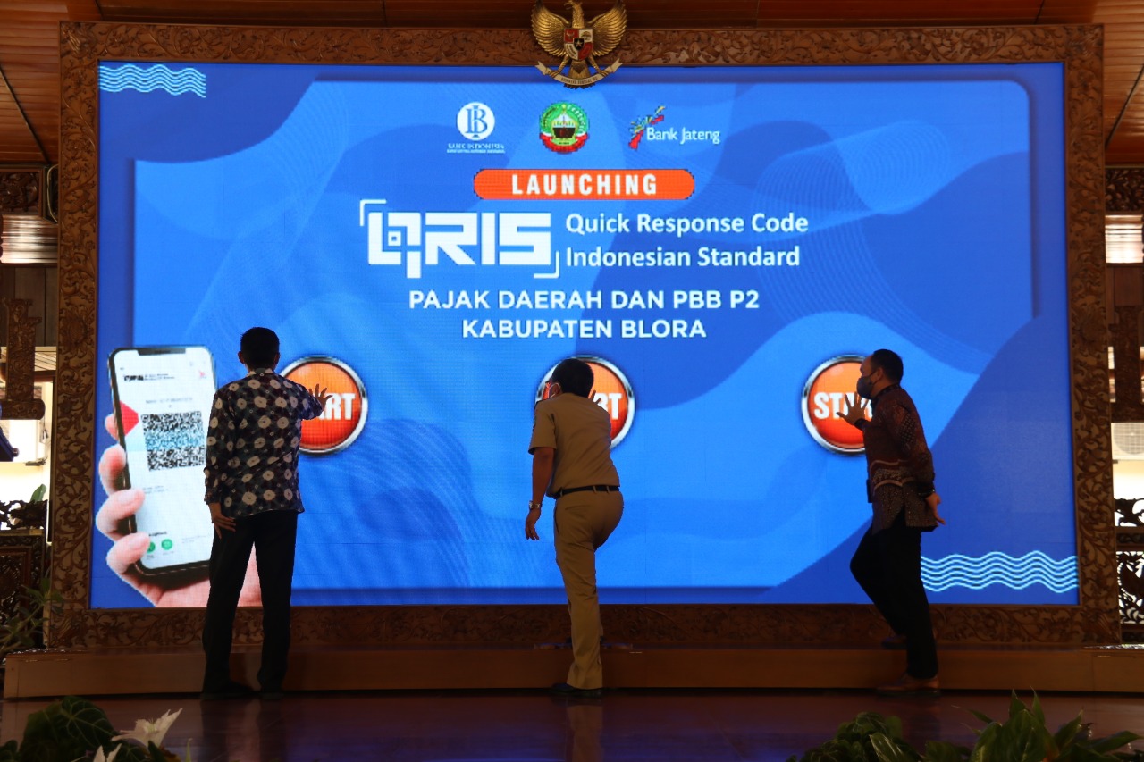 HALOBLORA.COM – Bupati Djoko Nugroho pada hari Senin (21/9/2020), meresmikan atau melaunching penggunaan aplikasi QRIS (Quick Response Code Indonesian Standard) dari Bank Indonesia bersama Bank Jateng untuk transaksi pembayaan pajak daerah dan PBB P2.
