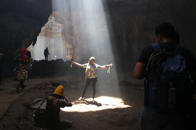 Mereka langsung asik berkreasi, mengarahkan model di bawah sorotan sinar matahari yang masuk ke goa untuk dijepret bersama-sama dari berbagai angle terbaik.