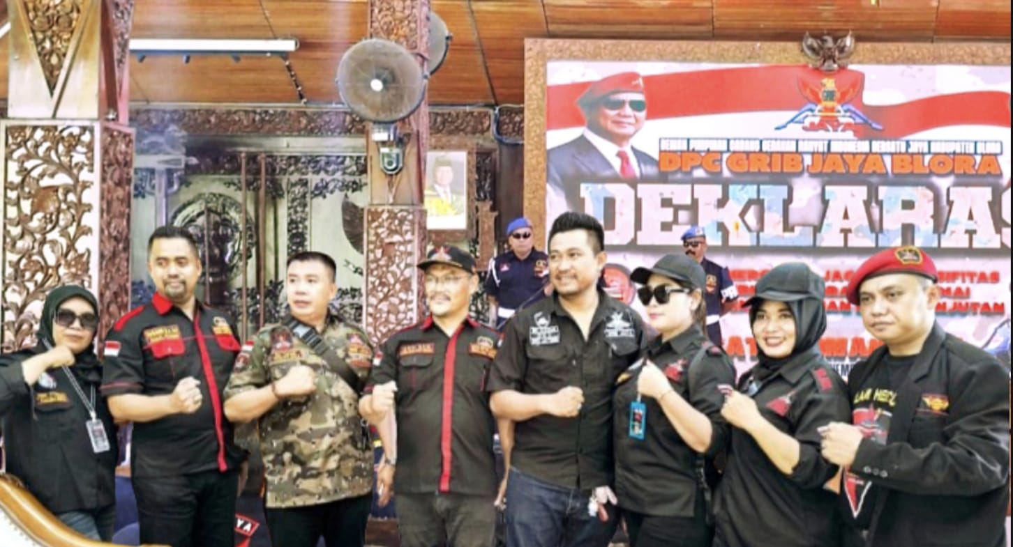 RADARBLORA.COM,– Dewan Pimpinan Daerah (DPD) Gerakan Rakyat Indonesia Bersatu (Grib) Jaya Kabupaten Blora secara resmi mendeklarasikan kehadiran organisasinya, Kamis 20 November 2025. Deklarasi yang mengangkat tema “Jalin Sinergitas, Jaga Kondusivitas, Wujudkan Blora Cinta Damai, Kawal Pembangunan Berkelanjutan” ini menegaskan komitmen organisasi untuk menjadi bagian dari penjaga stabilitas dan pendorong kemajuan di daerah.