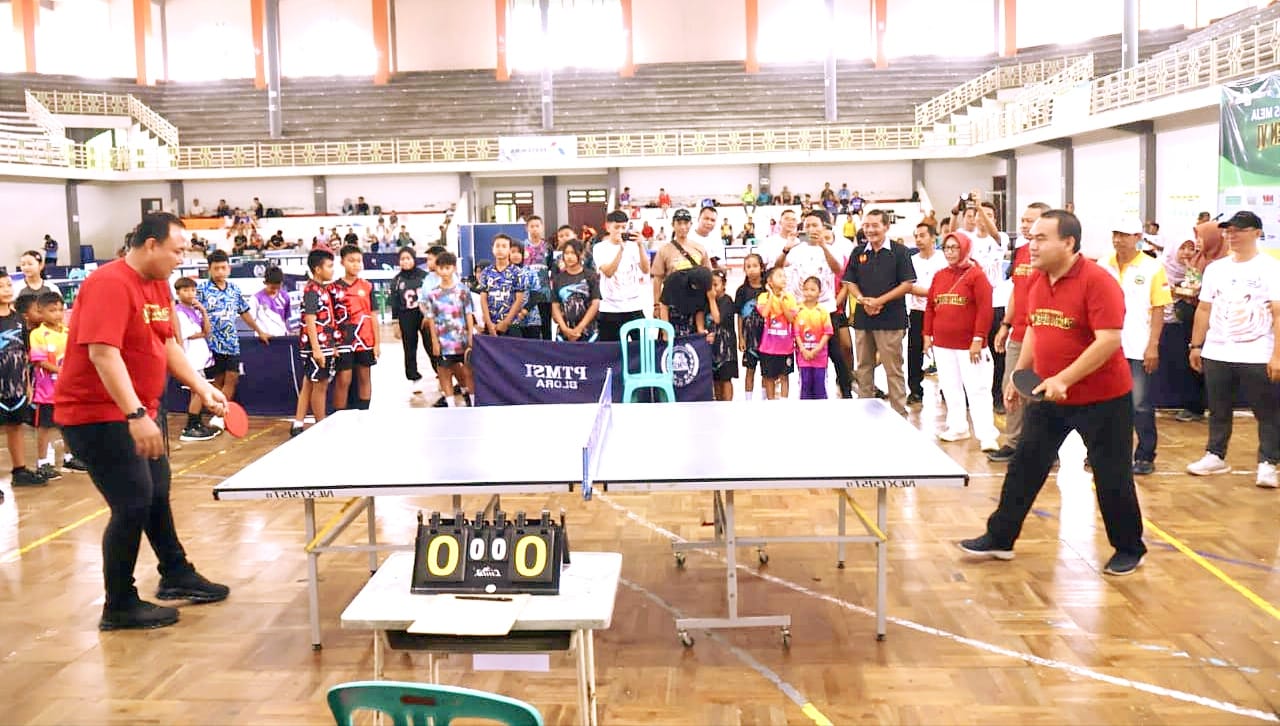 Bupati Blora, Dr. H. Arief Rohman dan Kapolres Blora, AKBP Wawan Andi Susanto saat membuka Kejuaraan Tenis Meja Blora Open VI Tahun 2025, di GOR Mustika Blora (foto dok: Humas Sekda/Radar Blora)