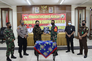 Nampak hanya dilakukan penandatanganan naskah penyerahan kegiatan TMMD Sengkuyung Tahap III Tahun 2020 oleh Bupati Blora diwakili Sekda Blora Komang Gede Irawadi, SE, MSi kepada Dandim 0721/Blora selaku Komandan Satuan Tugas (Dansatgas) TMMD, disaksikan Kapolres Blora diwakili Kasubag Dalops AKP Les Pujianto, Kajari Blora diwakili Kasintel M. Adung, SH, Ketua Pengadilan Blora Budi Setyawan, S.H., M.H.,, Kepala Dinas PMD Blora Hariyanto, Pasi Ter Kapten Cpl Sumanto dan Forkopimcam Jiken, di ruang pertemuan Setda Blora.