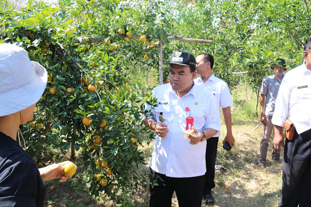 Wakil Bupati H. Arief Rohman M.Si yang datang bersama Camat Randublatung, perwakilan Dinas Pertanian dan Dewi, salah satu entrepreneur muda asal Yogyakarta, asli Randublatung, mengaku senang melihat perkebunan jeruk yang hasilnya luar biasa di Dukuh Gumeng, Desa Tanggel, Kecamatan Randublatung.