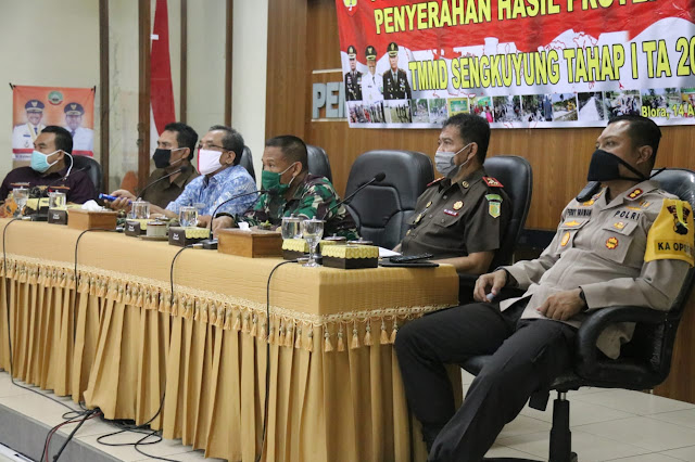 Acara juga dirangkai dengan penandatanganan naskah serah terima hasil pembangunan program TNI Manunggal Membangun Desa (TMMD) Sengkuyung Tahap I Tahun Anggaran 2020 yang dilakasanakan di Desa Sidomulyo, Kecamatan Banjarejo beberapa waktu lalu. Penandatanganan dilakukan Dandim 0721/Blora Letkol Inf. Ali Mahmudi, SE, dan Bupati Djoko Nugroho.(RED-HB01)