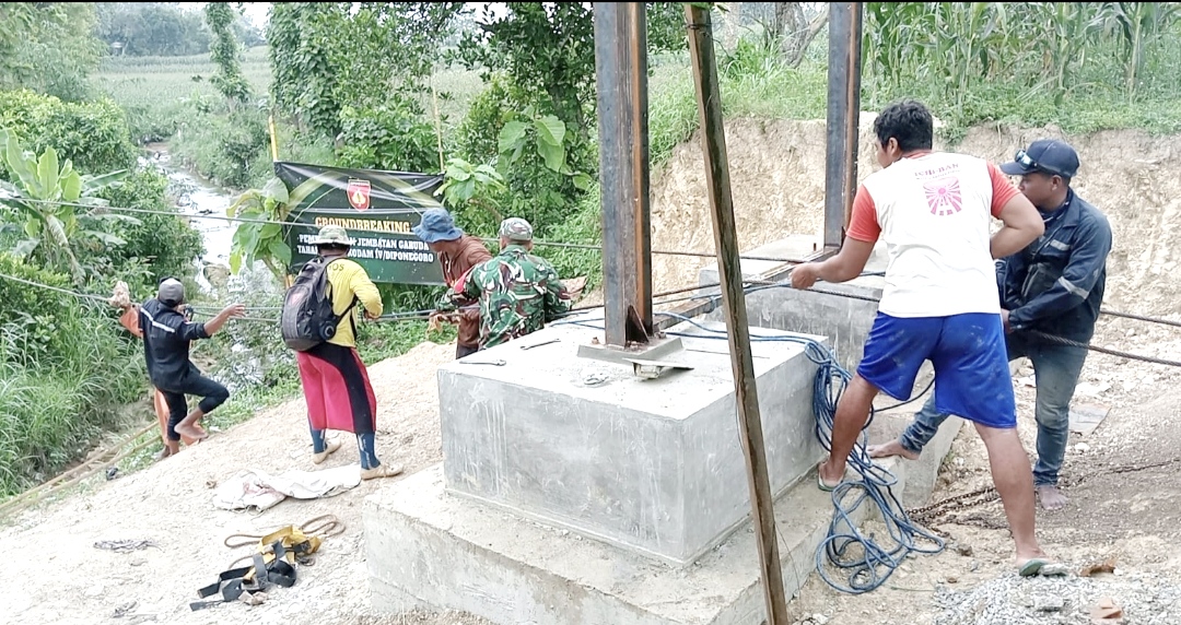 RADARBLORA.COM,– Pembangunan Jembatan Gantung Garuda di Desa Nglebur, Kecamatan Jiken, Kabupaten Blora, Jawa Tengah, memasuki fase penting. Proyek yang berada di bawah pengawasan Kodim 0721/Blora ini kini tengah menjalani tahap pemasangan tali sling, menandai percepatan menuju penyelesaian infrastruktur vital bagi warga pedesaan.