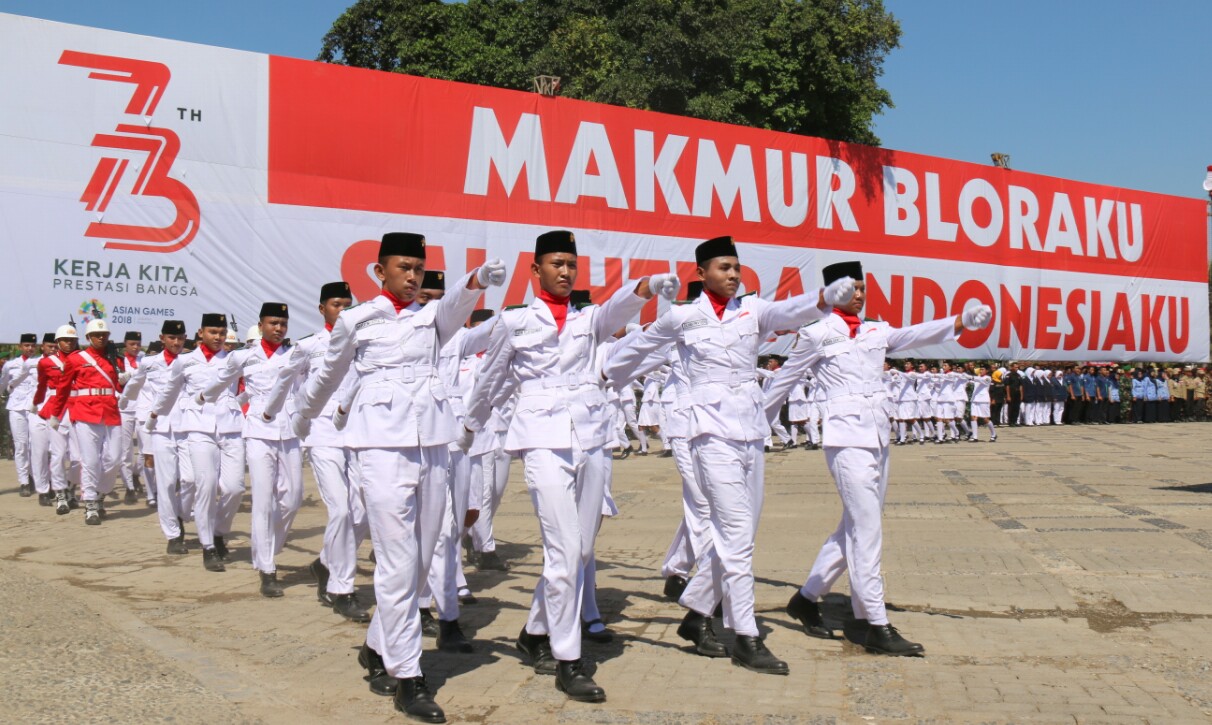 Proklamasi Kemerdekaan Republik Indonesia ke 73 tingkat Kabupaten Blora yang berlangsung di Alun-alun, Jumat (17/8/2018), mulai 09.30 WIB berlangsung lancar dan khidmat.