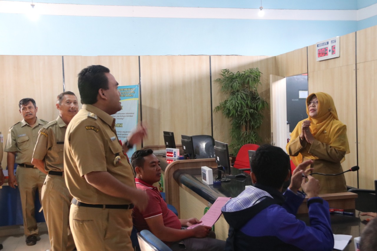 Disini, Wakil Bupati langsung masuk ke ruang pelayanan Administrasi Kependudukan (Adminduk) yang ada di bagian depan. Berjabat tangan dan berdialog dengan masyarakat yang sedang mengantri layanan Adminduk.