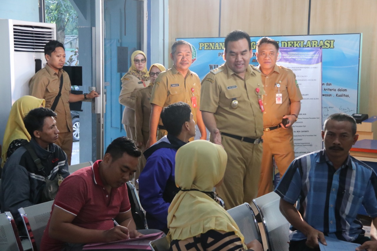 Sidak dilakukan Wakil Bupati bersama Sekda Komang Gede Irawadi, SE, M.Si, para Asisten Sekda, Kepala Badan Kepegawaian Daerah (BKD), dan Kepala Satpol PP Kabupaten Blora. Selepas dari Setda, rombongan langsung bertolak ke Dinas Kependudukan dan Catatan Sipil (Dindukcapil).